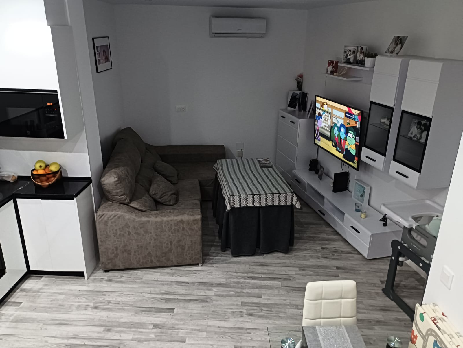 - Primera planta, salón cocina, salón con TV, sofá, etc. Cocina totalmente equipada con todos los electrodomésticos y mobiliario.